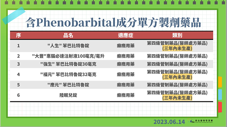 ▲含phenobarbital成分單方製劑藥品一覽表。(圖/食藥署提供)