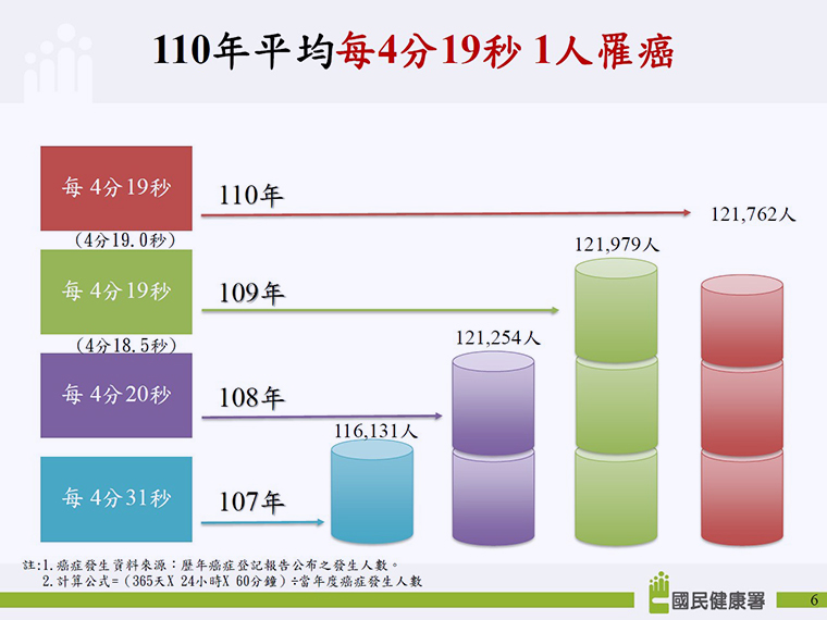 ▲110年平均每4分19秒1人罹癌。(圖/國健署提供)