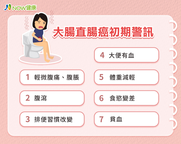 ▲大腸直腸癌初期警訊。(圖/NOW健康製作)
