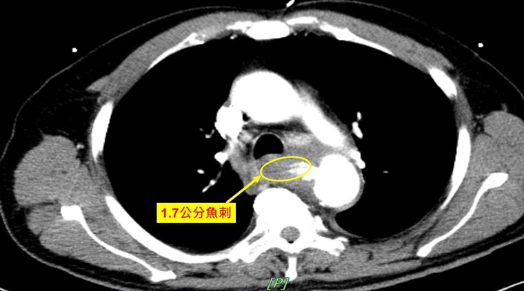 ▲誤食1.7公分魚刺竟造成腸胃道穿孔,甚至導致主動脈食道廔管,而危及生命。(圖/奇美醫院提供)