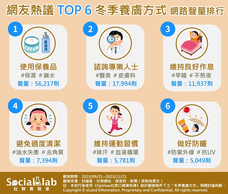 ▲網友熱議TOP6冬季養膚方式如上。(圖/《Social Lab社群實驗室》提供)