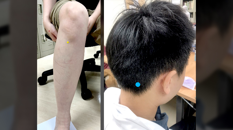 ▲改善過敏症狀,可以按摩足三里穴(左圖)及風池穴(右圖)。(圖/徐敬閔醫師提供)