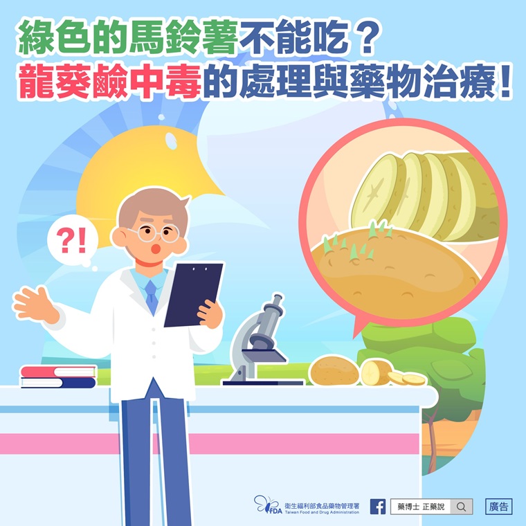 ▲綠色的馬鈴薯不能吃?龍葵鹼中毒的處理與藥物治療報你知。(圖/食藥署提供)