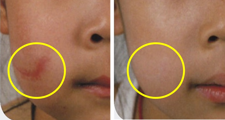 【NOW健康 連慧婷/台南報導】8歲的林小妹妹是1名可愛的小學生,1年前在學校不慎跌倒,右臉頰遭撞擊造成深部外傷,如今傷口雖已癒合,卻留下長達約7公分血管增生型的紅色明顯疤痕,因擔心別人異樣眼光,上下課時總要隨時配戴口罩,為此,家長帶著林小妺妺至奇美醫院傷口照護中心主治醫師葉敬淳門診求診,葉醫師檢查後為她安排雷射療程,所幸臉頰疤痕已有明顯改善,也讓她恢復往日的活潑。