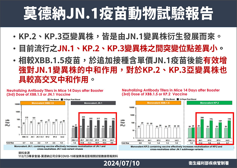 ▲莫德納JN.1疫苗動物試驗報告。(圖/疾管署提供)