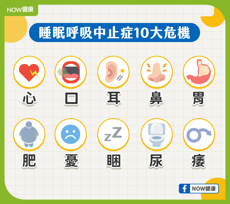 徐英碩也細數,睡眠呼吸中止症主要區分為以下10大危機: