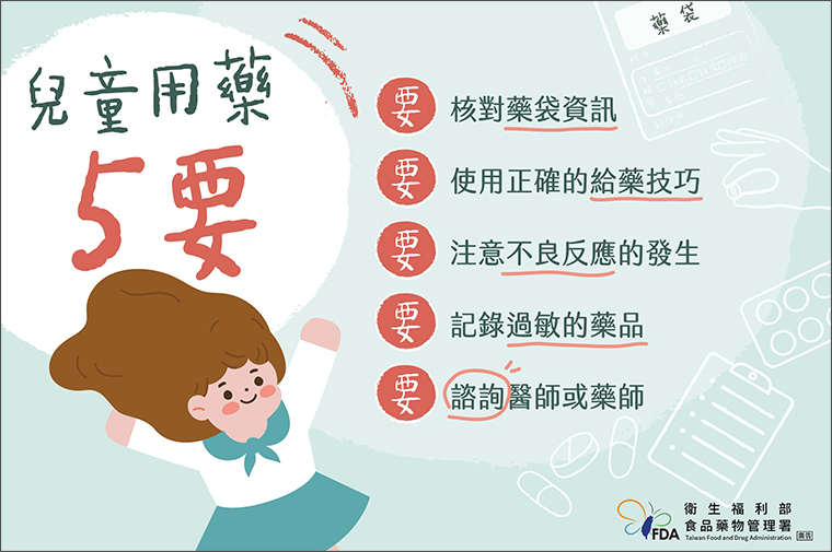 為了孩子用藥安全著想,食藥署特別提供「5要5不」安全用藥原則: