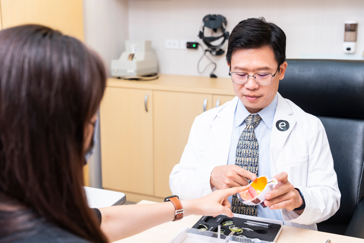隨著醫療科技迅速發展,手術方式和人工水晶體的選擇越來越多樣化。陳彥伯主任強調,手術前需經完整檢查評估視力、視神經及視網膜等狀況。人工水晶體並非價格越高、功能越多就越好。舉例來說,多焦點人工水晶體雖然可以同時看遠、中、近,但因為繞射圈設計分光的因素,對於需要夜間駕駛或是視網膜功能不佳的患者來說,可能會導致光線分散引起光暈感,影響視力清晰度。因此,手術前必需綜合評估患者視力狀況及視神經和視網膜等功能,並依患者日常的用眼習慣及需求,量身訂做白內障手術方式及選擇適合的人工水晶體。