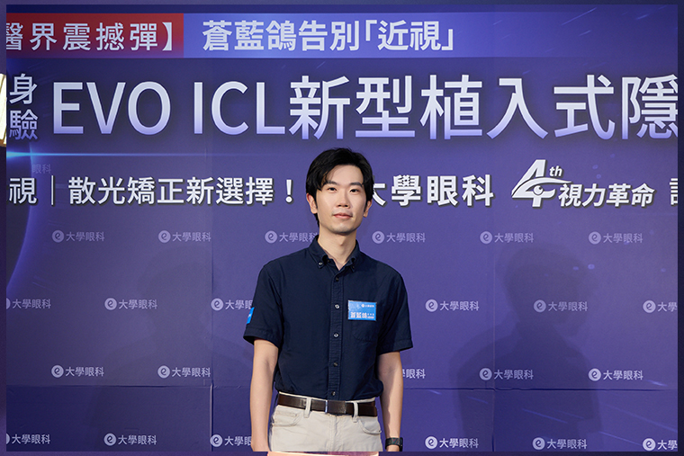蒼藍鴿表示,他早期考慮過雷射手術,但因夜間瞳孔偏大(約7mm),擔心術後出現眩光、夜間視力品質下降,因此遲遲未下決定。直到今年看到EVO ICL「新型」植入式隱形眼鏡在台灣引進的新聞後,發現其可逆、保留角膜結構的特性,終於打消顧慮、決定接受手術。他認為,EVO ICL最大的優勢,就是即使不滿意也能取出,且在夜間視力表現上也能維持穩定,讓他更感覺安心,並下定決心接受手術。