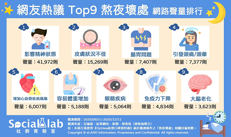 ▲網友熱議9大熬夜壞處。(圖/《Social Lab社群實驗室》提供)