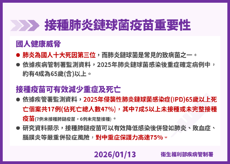 ▲接種肺炎鏈球菌疫苗的重要性。(圖/疾管署提供)