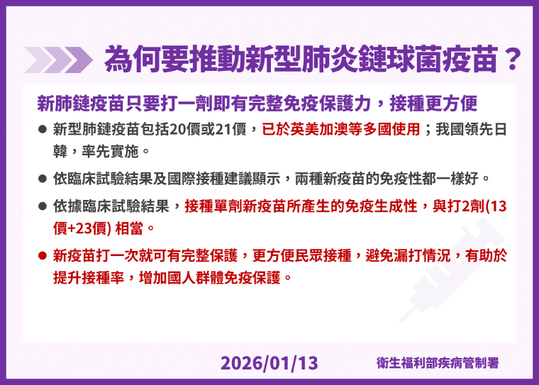 ▲為何要推動新型肺炎鏈球菌疫苗說明。(圖/疾管署提供)