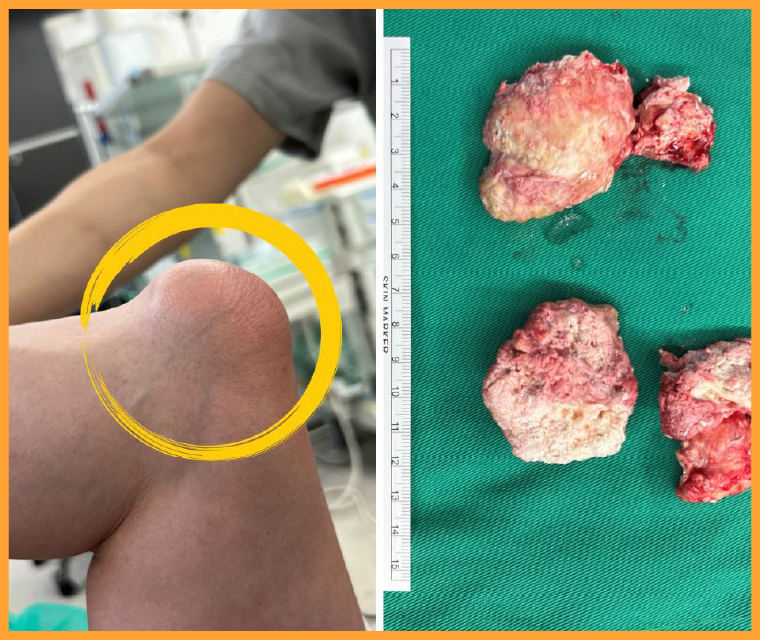 ▲進行微創手術後取出痛風石,解除神經壓迫。(圖/長安醫院提供)