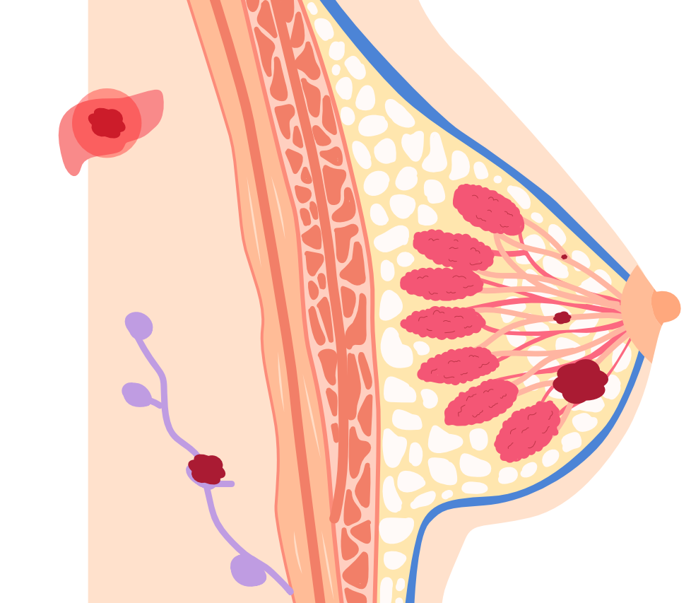 乳癌是由乳房的乳腺管細胞或是腺泡細胞,經由不正常分裂、繁殖,所形成之惡性腫瘤。乳房主要是有12至20個乳葉組成,內部構造包含乳頭、輸乳管、輸乳竇、乳腺管、乳小葉、脂肪組織等,以病理分類,最常見為乳腺管癌、其次為乳小葉癌。